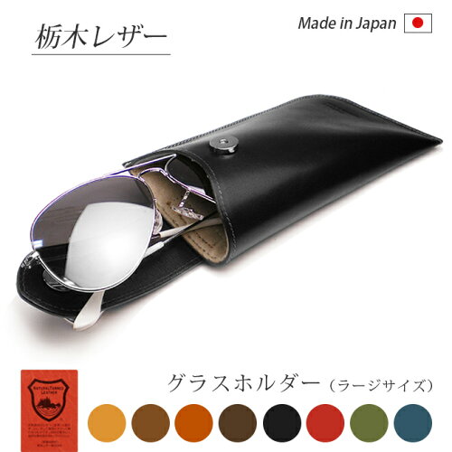 【カラビナ付き】本革 グラスホルダー【ラージ】 栃木レザー / 眼鏡ケース メガネケース レザー / サングラス / 日本製 手作り / ヌメ革 フルタンニン / おしゃれ ギフト 贈り物 / 名入れ 可能 / 送料無料