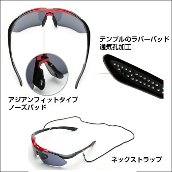 【エントリーでポイント5倍】スポーツサングラス 軽量 収納ケース付き 4点セット アジカンフィットノーズパッド 送料無料