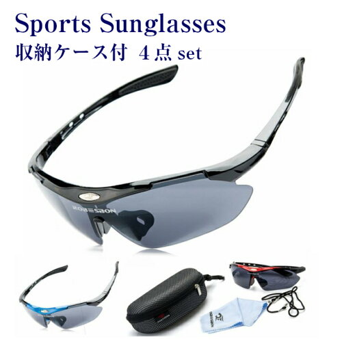 スポーツ サングラス 収納ケース付き 4点セット ランニング ジョギング 陸上 競技 登山 トレッキング、サイクリング 行楽 ドライブ やバイクライディング 野球 ゴルフ テニス マリンスポーツ や スキー スノボー ウィンタースポーツ などに 僅か25gの軽さと 長めのテンプルパッド仕様で激しい動きの中でもズレを防ぎ まるで掛けていないかのようなフィーリング セミハード収納ケース付きで 充実のお買得感で好評をいただいています。