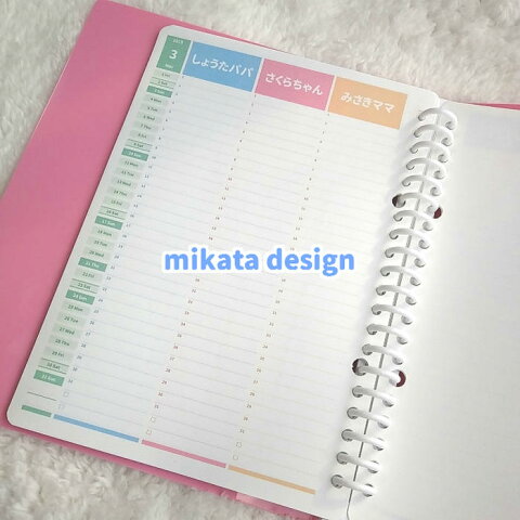 2021年 1か月分【3人のお名前入りスケジュール帳】ママ手帳 こども 家族の予定 ファミリーダイアリー カレンダー 手帳 2021年7月始まり 2021年8月始まり 他◆3人用 マンスリー パステルカラーみんなのスケジュール【ルーズリーフ / 6穴システム手帳リフィル】A5 B5 A4