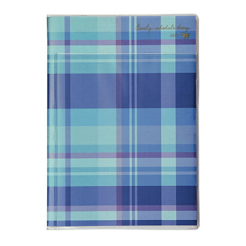 2021年 手帳 クツワ 家族手帳L A5薄型(月曜始まり) チェック・ブルー 013SHB スケジュール帳 ダイアリー かわいい