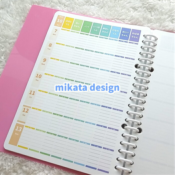 A5 B5 A4【8人のお名前入りスケジュール帳】ママ こども 仕事の予定 ファミリー手帳 ダイアリー 受験ノート 2021年4月始まり/ 2021年7月始まり/他◆8人用 連続ウィークリーCタイプ 12か月分 パステルカラーみんなのスケジュール【ルーズリーフ/6穴システム手帳リフィル】