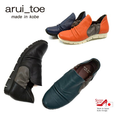 【クーポンで10%OFF★7/19 20:00から】(セール価格 返品不可)本革 スリッポン コンフォート 3E【arui_toe(アルイトウ)】くしゅっとカジュアルデザイン。本革バイカラースリッポンシューズ[FOO-JC-3592]