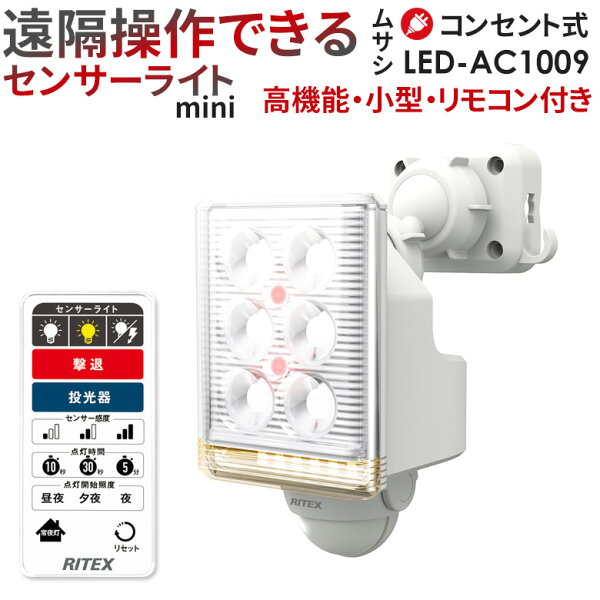 ≪ 商品詳細 ≫ < 仕様 > 【サイズ】高さ126×幅73×奥行141mm 【重量】590g(クランプ除く) 【付属品】リモコン・ボタン電池CR2025・取り付けネジ×2・コンクリート用プラスチックプラグ×2・クランプ台・蝶ナット・L型ボルト・ネジキャップ 【電球 ※1】 9W×1(高輝度白色LED設計寿命4万時間) 全光束…750ルーメン(白色)、300ルーメン(電球色) 【電源/電圧】AC100V 50Hz/60Hz 【消費電力】 点灯時…10W(白色光)、7W(暖色灯)、1.2W(常夜灯) 待機時…1W以下 【センサー】 探知方式…焦電型赤外線センサー 探知範囲…180° 最遠 12m(取り付け高さ2.5m) 【点灯時間設定】10秒/30秒/5分/10秒フラッシュ 【点灯切替機能】 昼…周囲が明るくても暗くても点灯(常夜灯なし) 夕…周囲が明るくても暗くても点灯 夜…周囲が暗い時のみ点灯 【電源コード長さ】3m 【クランプ取り付けサイズ】 厚み…最小15〜最大100mm パイプ径…最小30mm〜最大85mm 【設置場所】奥内・屋外用(防雨タイプ IP44) ※1 LED球は交換できません。