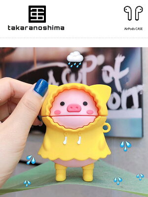 [takaranoshima] AirPods Pro Raincoat Pig Case レインコート ピッグ ピンク 豚 ポンチョ 雨 雨具 傘 レイン ブーツ ドール キャラクター 面白い ユニーク エアポッズ ストラップ リング 立体的 可愛い ユニーク アイフォン デザインケース エアーポッズケース エアーポッズカバー 高い撥水性と弾力性に優れたシリコーンゴム素材を採用、レインコートを着た可愛い豚のAirPods ケースです。