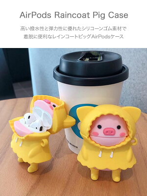 AirPods Pro Raincoat Pig Case レインコート ピッグ ピンク 豚 ポンチョ 雨 雨具 傘 レイン ブーツ ドール キャラクター 面白い ユニーク エアポッズ ストラップ リング 立体的 可愛い ユニーク アイフォン デザインケース エアーポッズケース エアーポッズカバー
