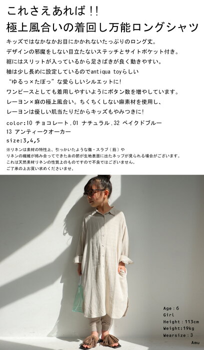極上風合いの麻×レーヨンがお洒落を格上げ。キッズシャツワンピース・6月29日10時〜再再販。メール便不可 TOY