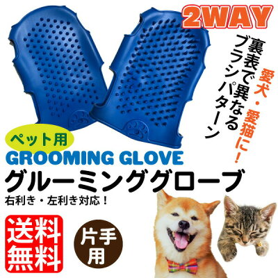 犬 猫 ペット用 グルーミンググローブ (片手用) 色:ブルー 両面ブラシ フリーサイズ 両手対応 抜け毛 毛玉 マッサージ メール便(ポスト投函)送料無料【DBP】