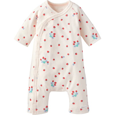 《コンビミニ》おうちラップクラッチ(イチゴ):女の子 50cm 60cm 70cm _sj | 赤ちゃん 服 長袖 ロンパース 新生児服 新生児 子供 ベビー服 カバーオール おしゃれ 可愛い ブランド ラップクラッチ 子供服 かわいい 出産祝い ピンク ベビーウェア 春夏 パジャマ