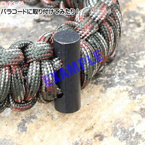 【商品詳細】 いざという時の為に!身に着けるファイヤースターター! 小さなサイズのフェロロッドで、直径4mmの穴が2つ空いているので、ひも状のブレスレットに取付けてみたり、 靴紐に取付けてみたりなど、緊急時用に、日常生活で持ち歩くことができます! 使用時には、乾いた木くずや紙などに向かって、ナイフ等鋭いもので、素早く削るように 押し出します。